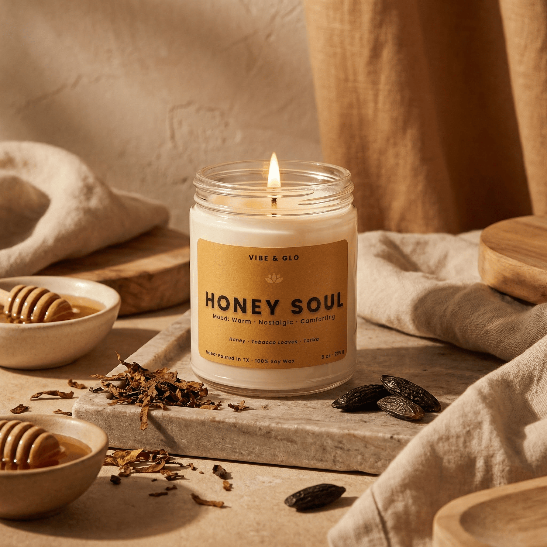 Honey Soul – Honey & Tobacco Soy Candle - Vibe & Glo Candle Studio