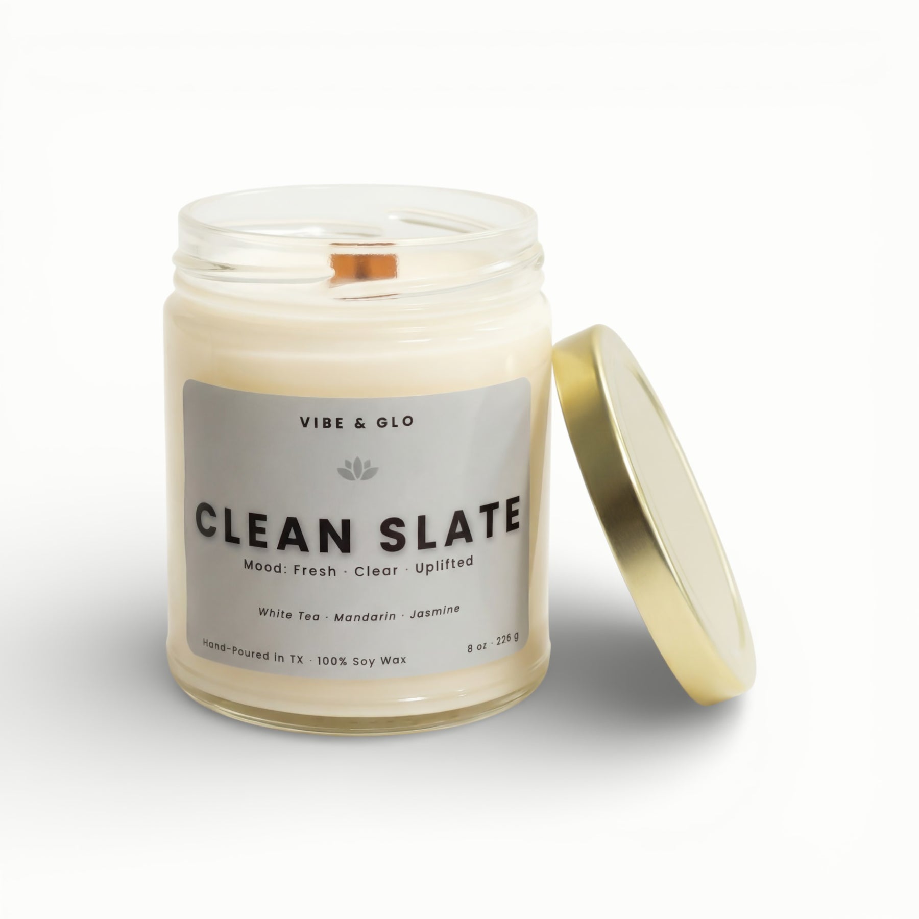 Clean Slate is your reset in a jar — a breath of clarity wrapped in citrus and calm. Bright mandarin and lemon open the scent with a burst of freshness, instantly awakening the space and the senses.