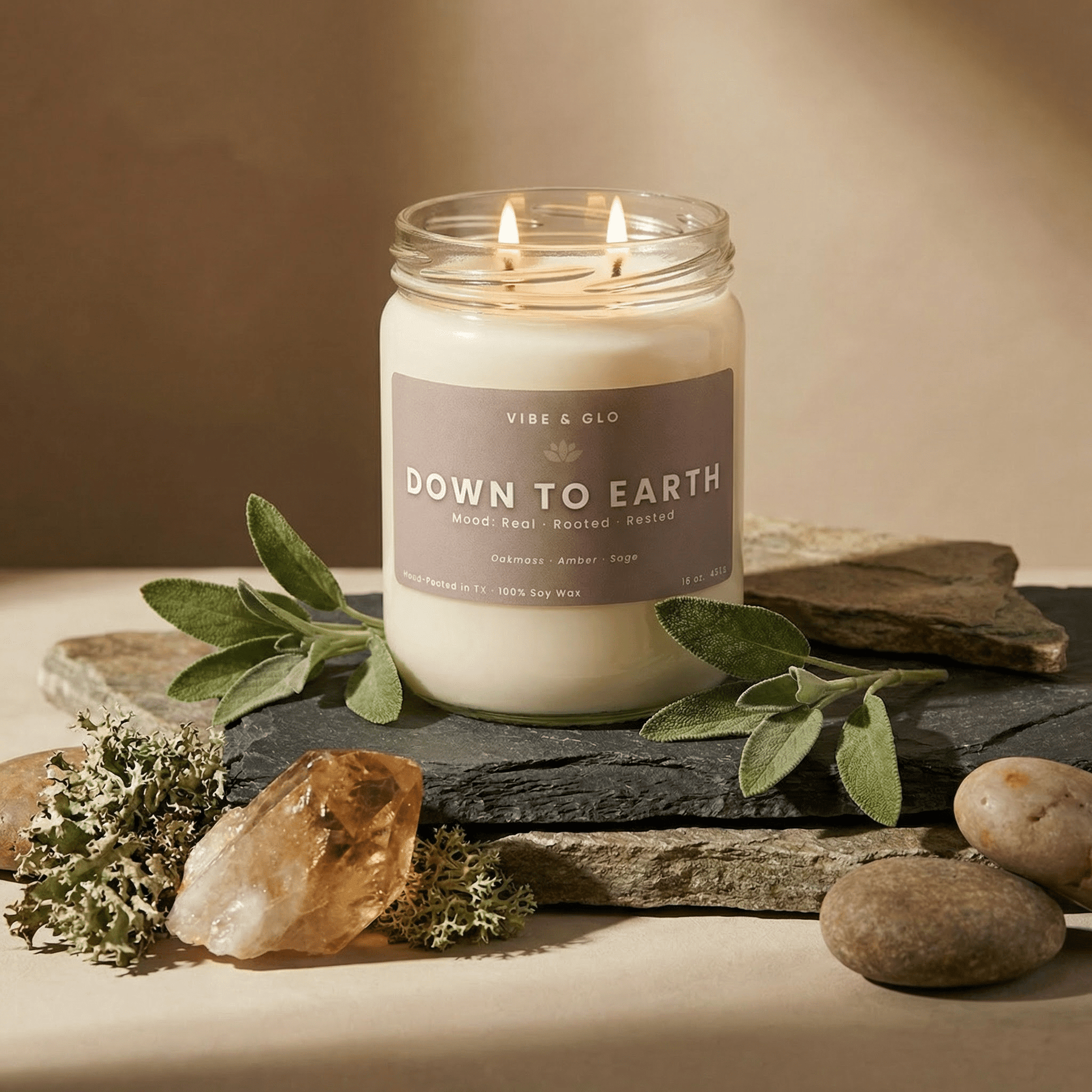 Down to Earth is balance in its most grounded form — an earthy soy candle designed to feel calm, steady, and quietly powerful.