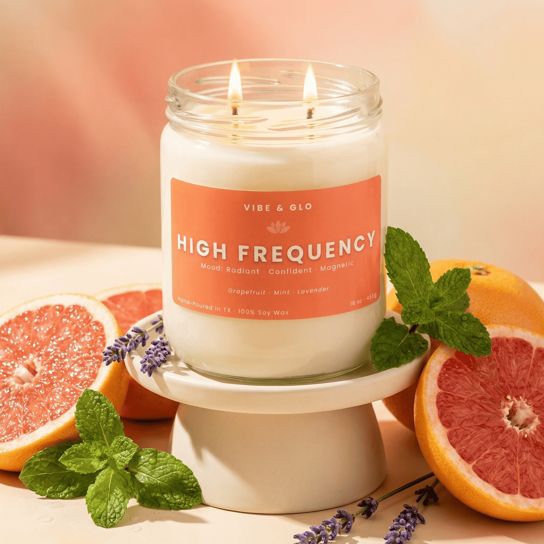 High Frequency is clarity with momentum — a vibrant citrus soy candle designed to wake up your space and lift your mood instantly.