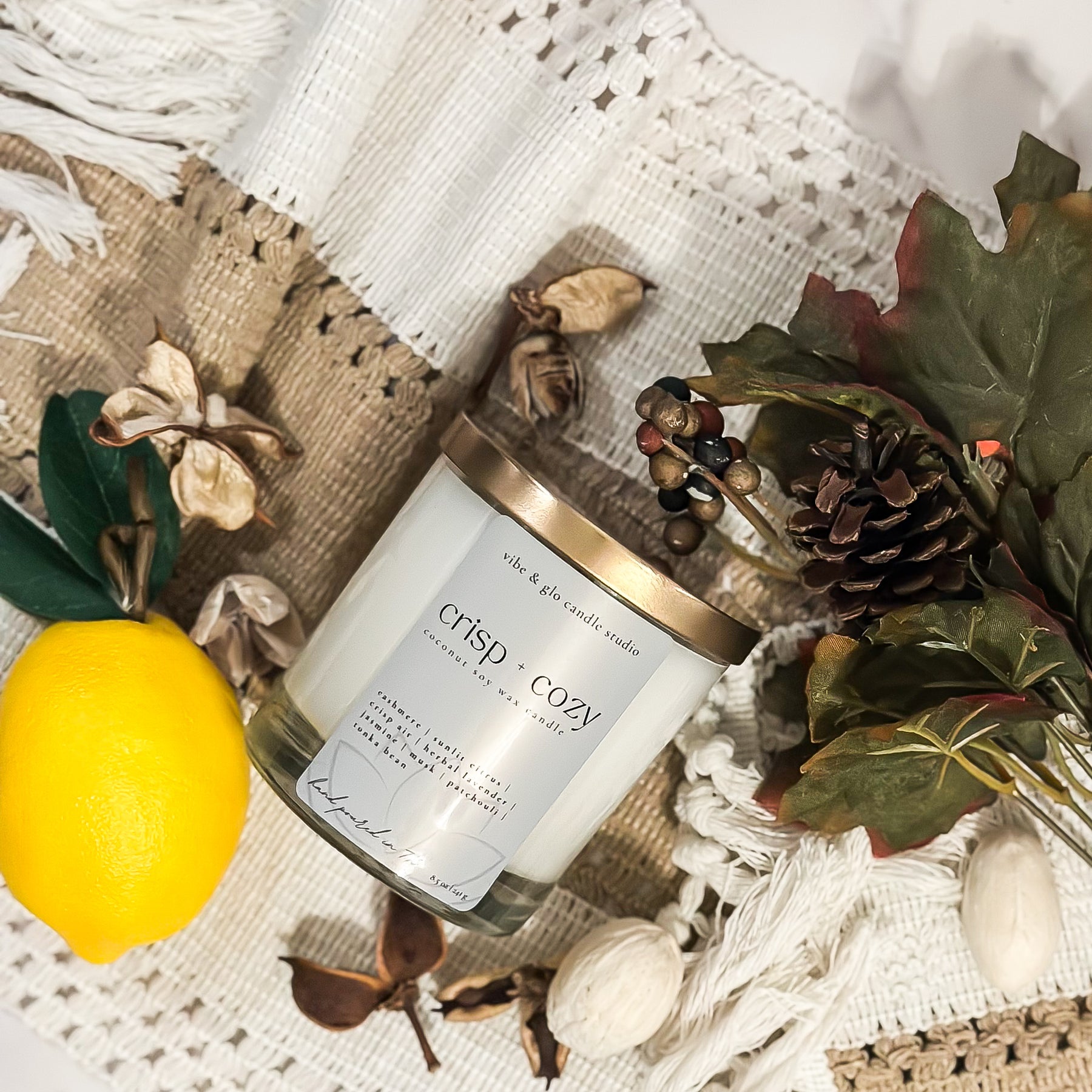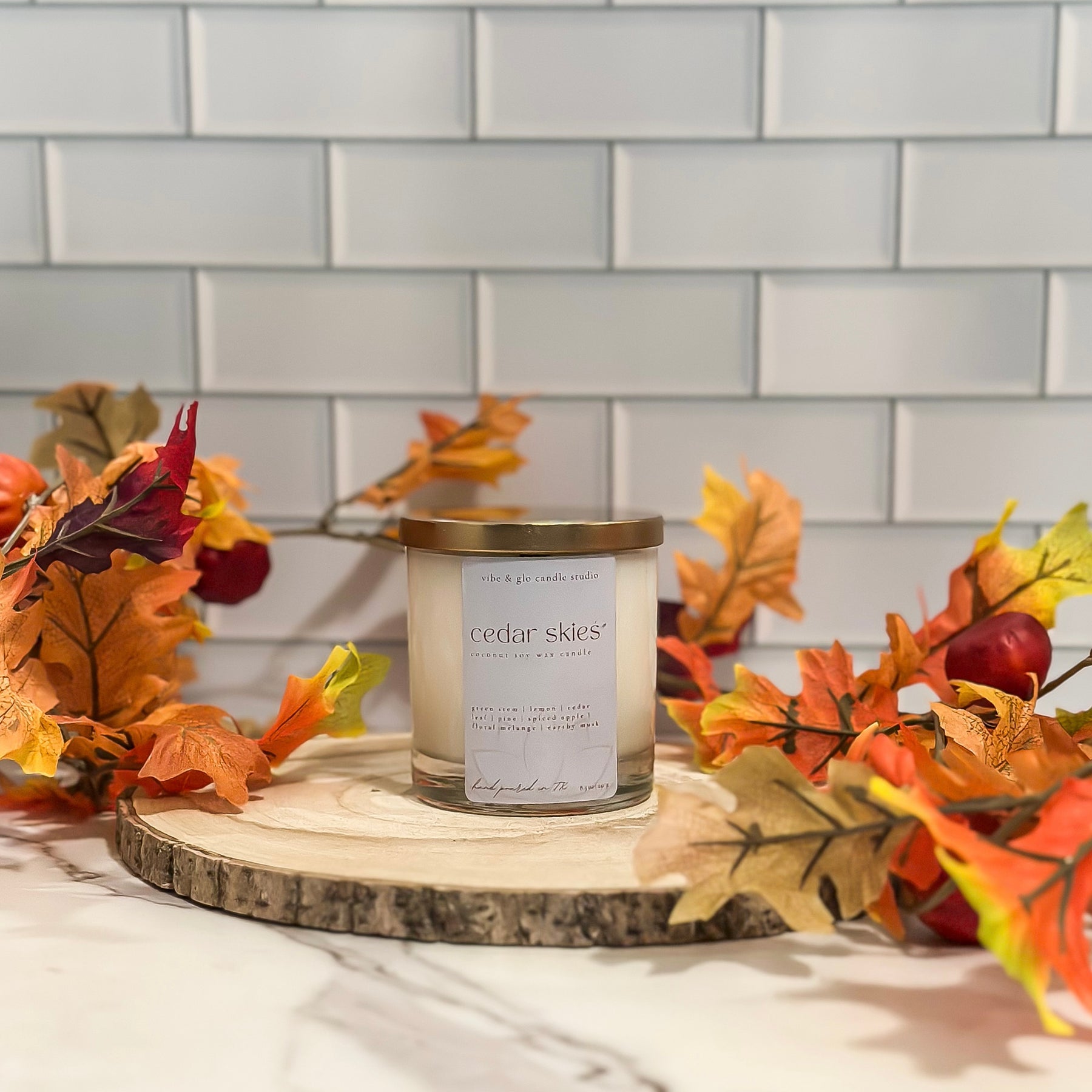 - Coconut soy wax + wooden wick