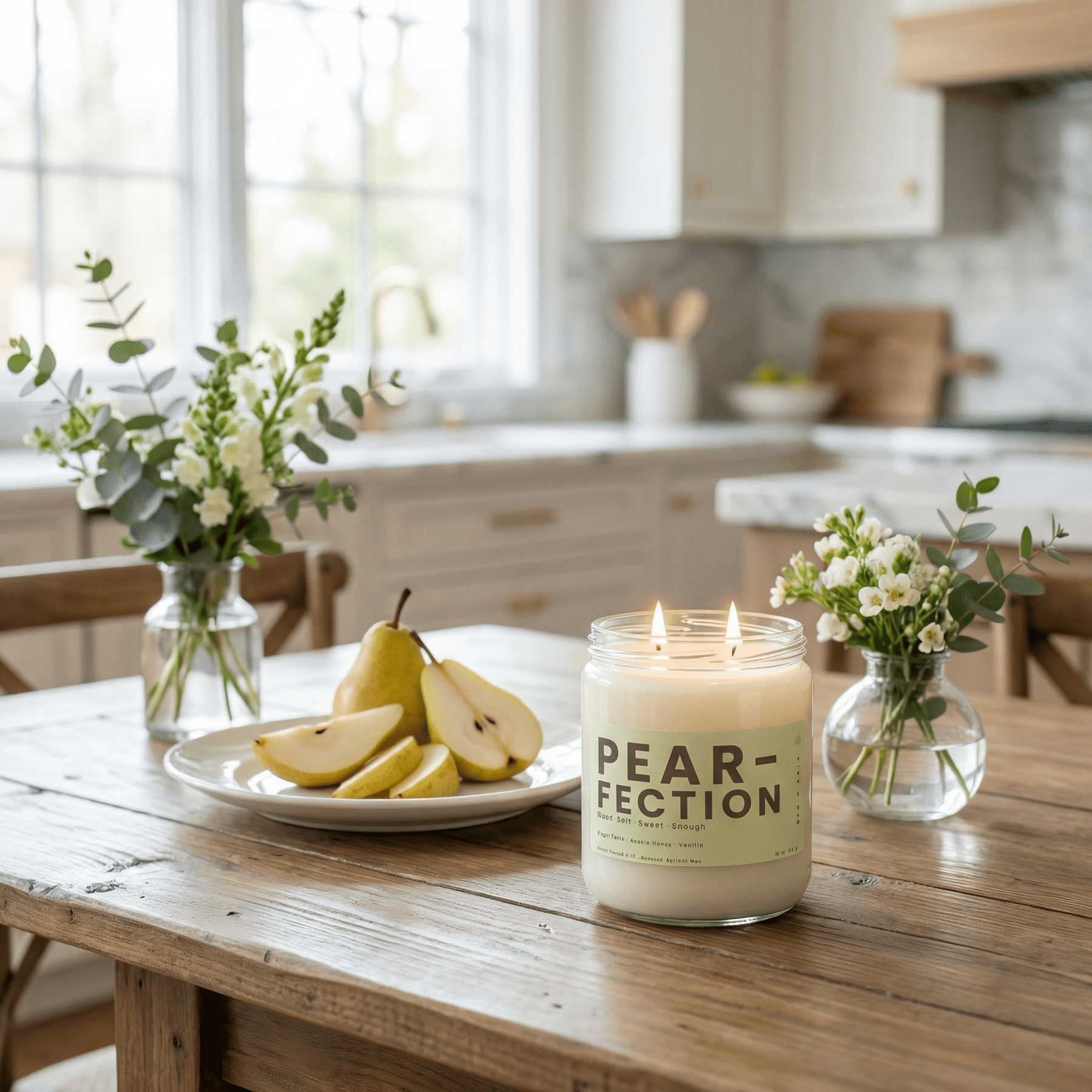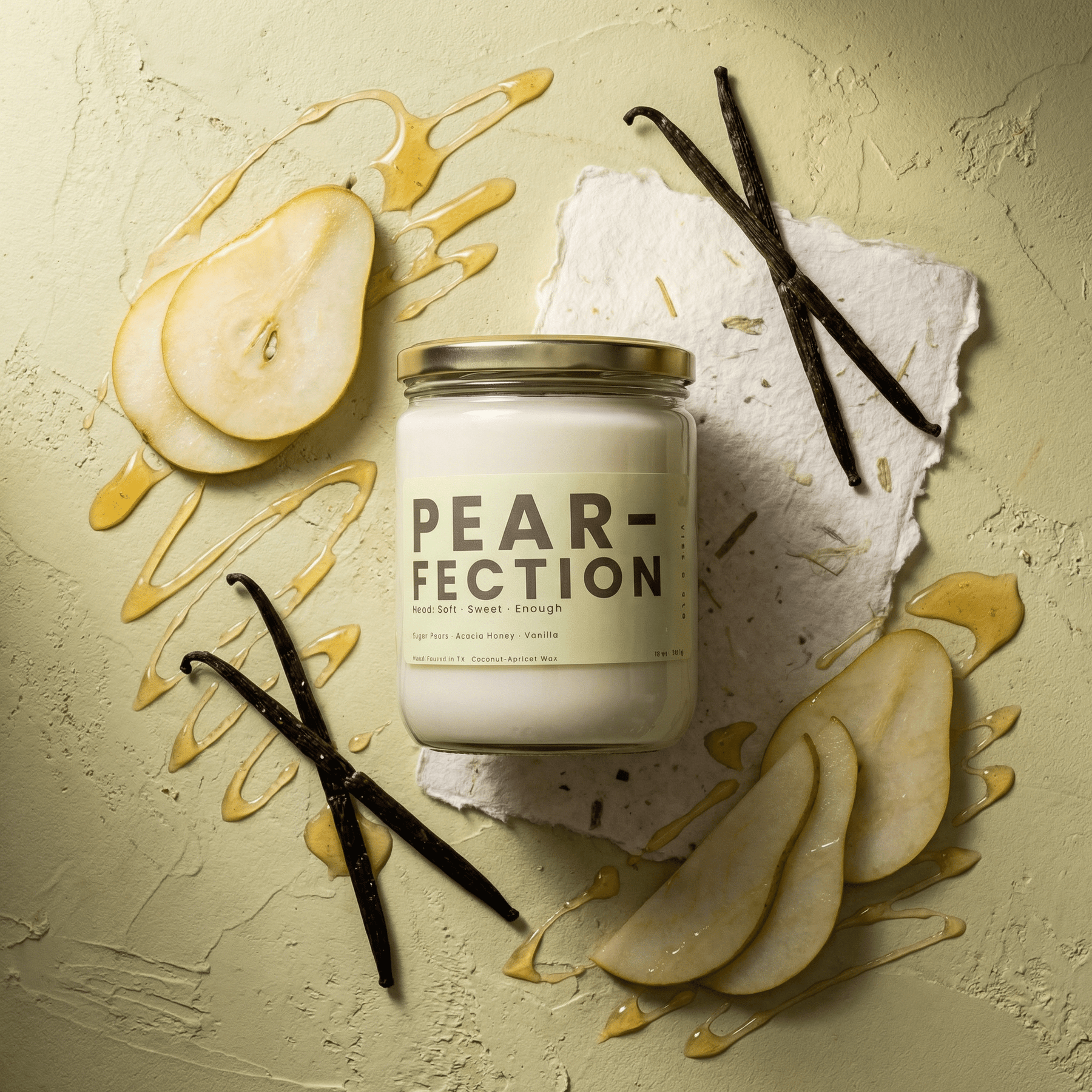Pear-Fection is your cozy comfort scent ; now elevated with a double wick option for a fuller, more inviting fragrance experience that gently fills your space without overwhelming it.